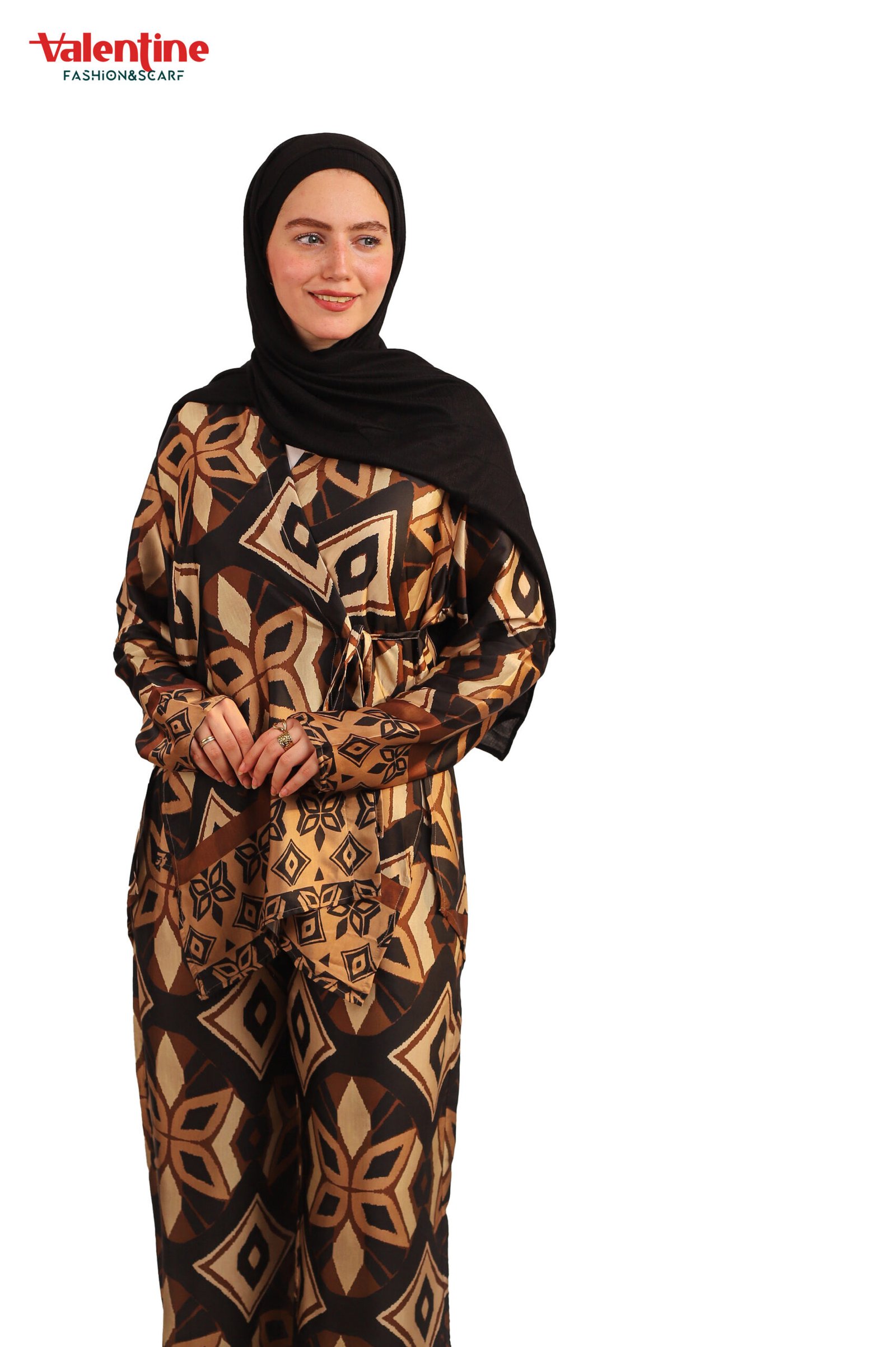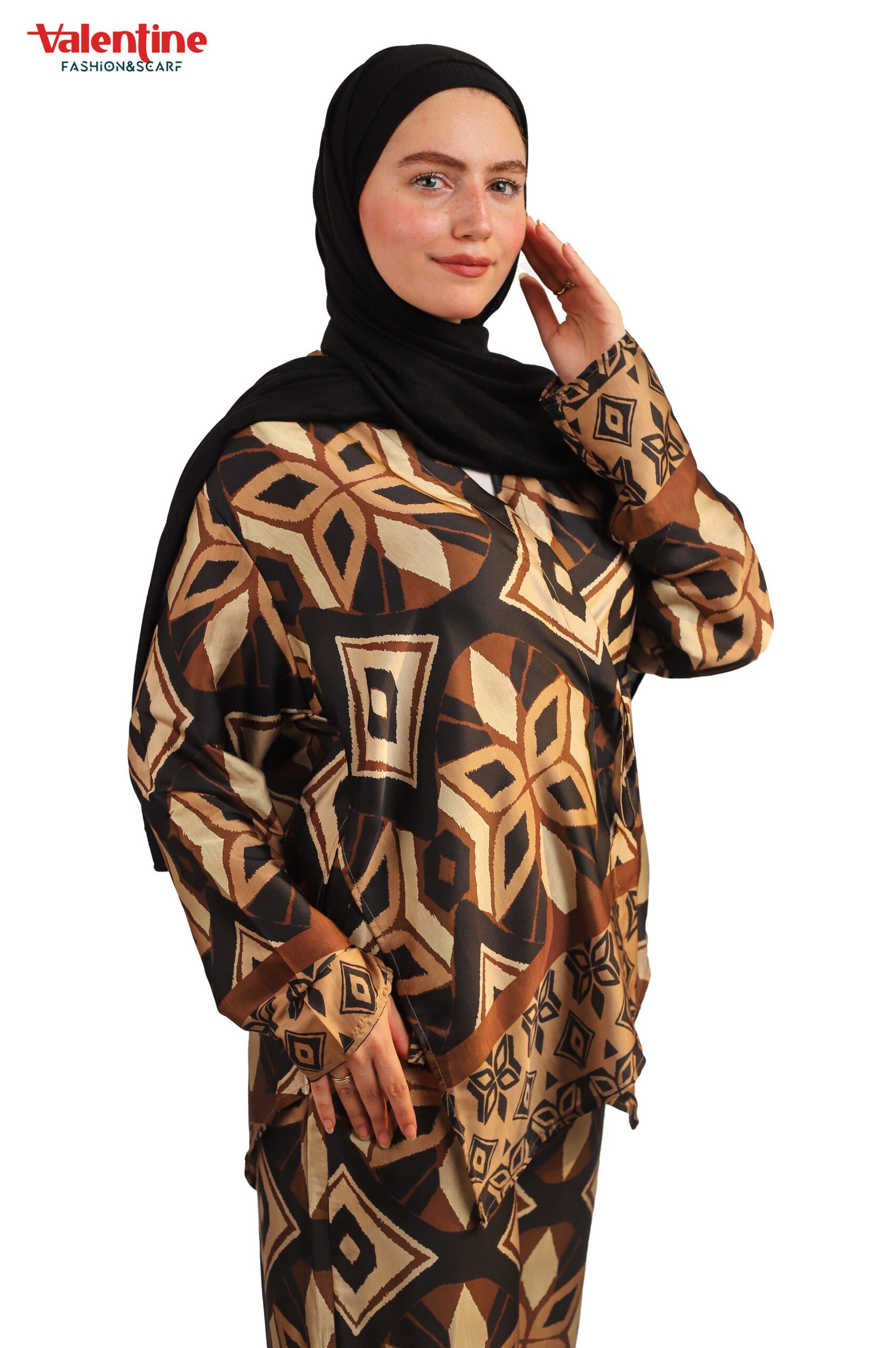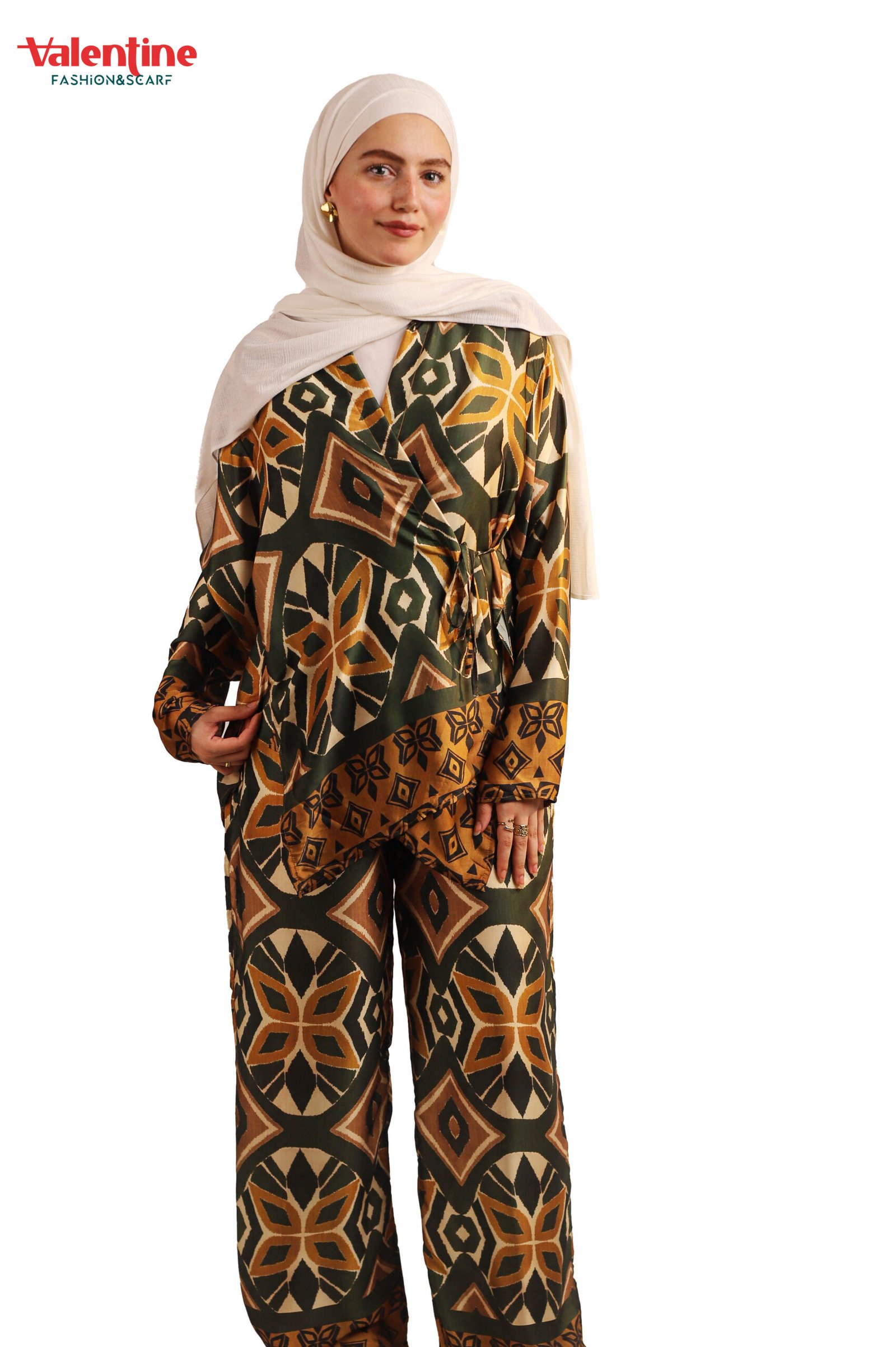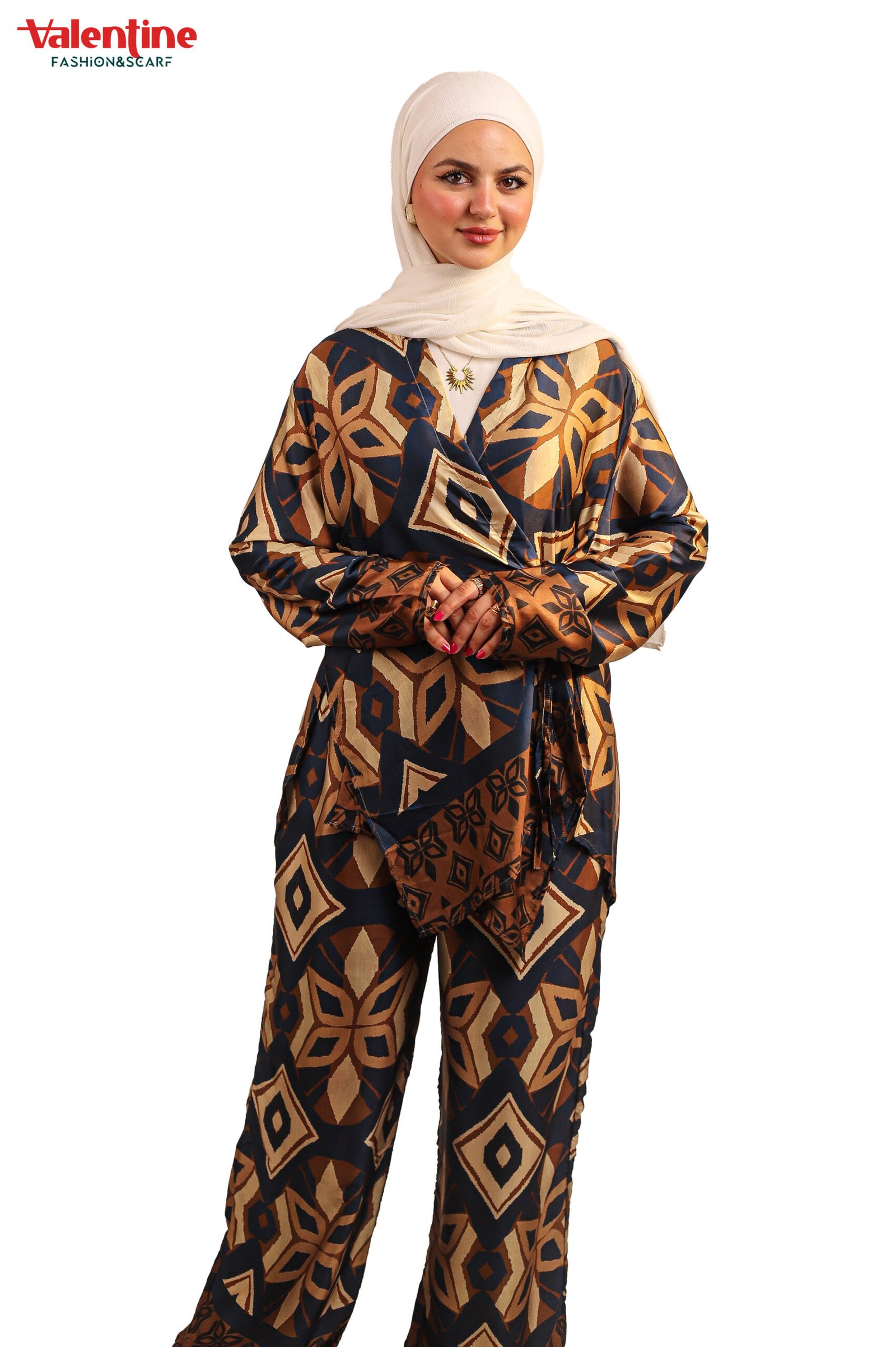& Free ShippingEffortlessly elegant and ultra-comfortable, this printed two-piece set is designed for women who appreciate bold prints with a modest twist. Featuring a relaxed-fit tunic top and wide-leg trousers, this set offers all-day comfort without compromising on style. The rich geometric pattern adds a statement touch, while the soft, breathable fabric makes it ideal for everyday wear, work, or casual outings.